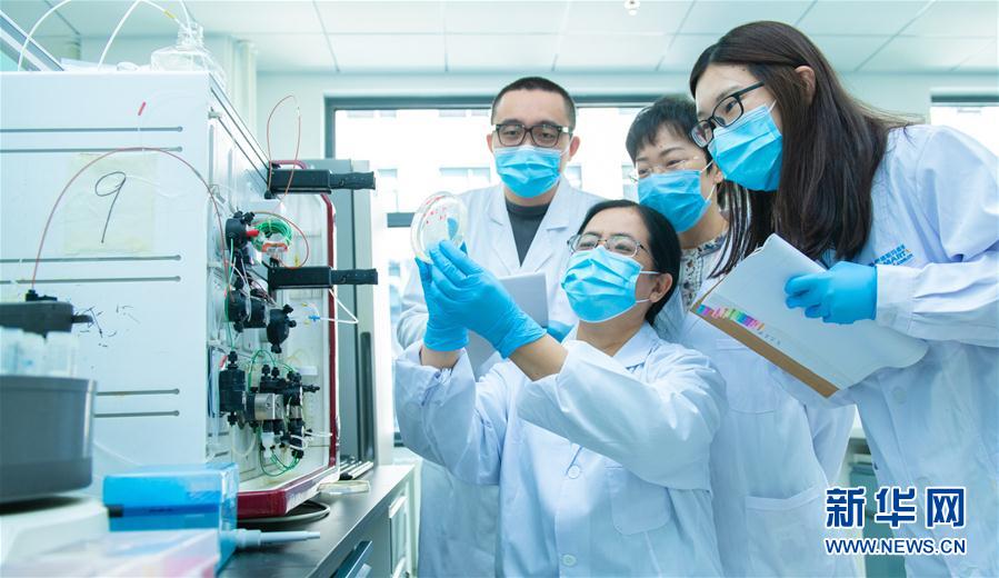 国家应急防控药物工程技术研究中心研究员钟武(前)在位于北京的实验室工作(2019年4月29日摄)。 新华社发